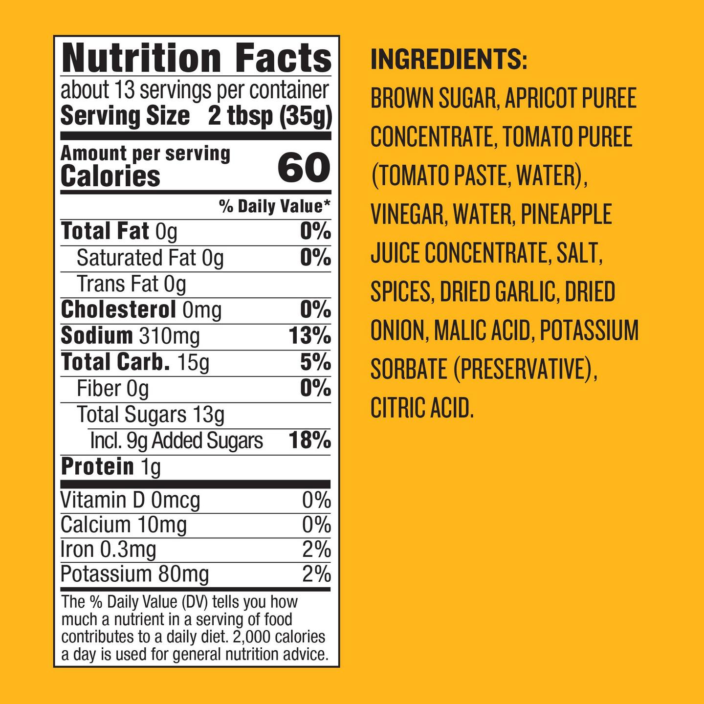 - Apricot-forward BBQ sauce with sweet and tangy flavor